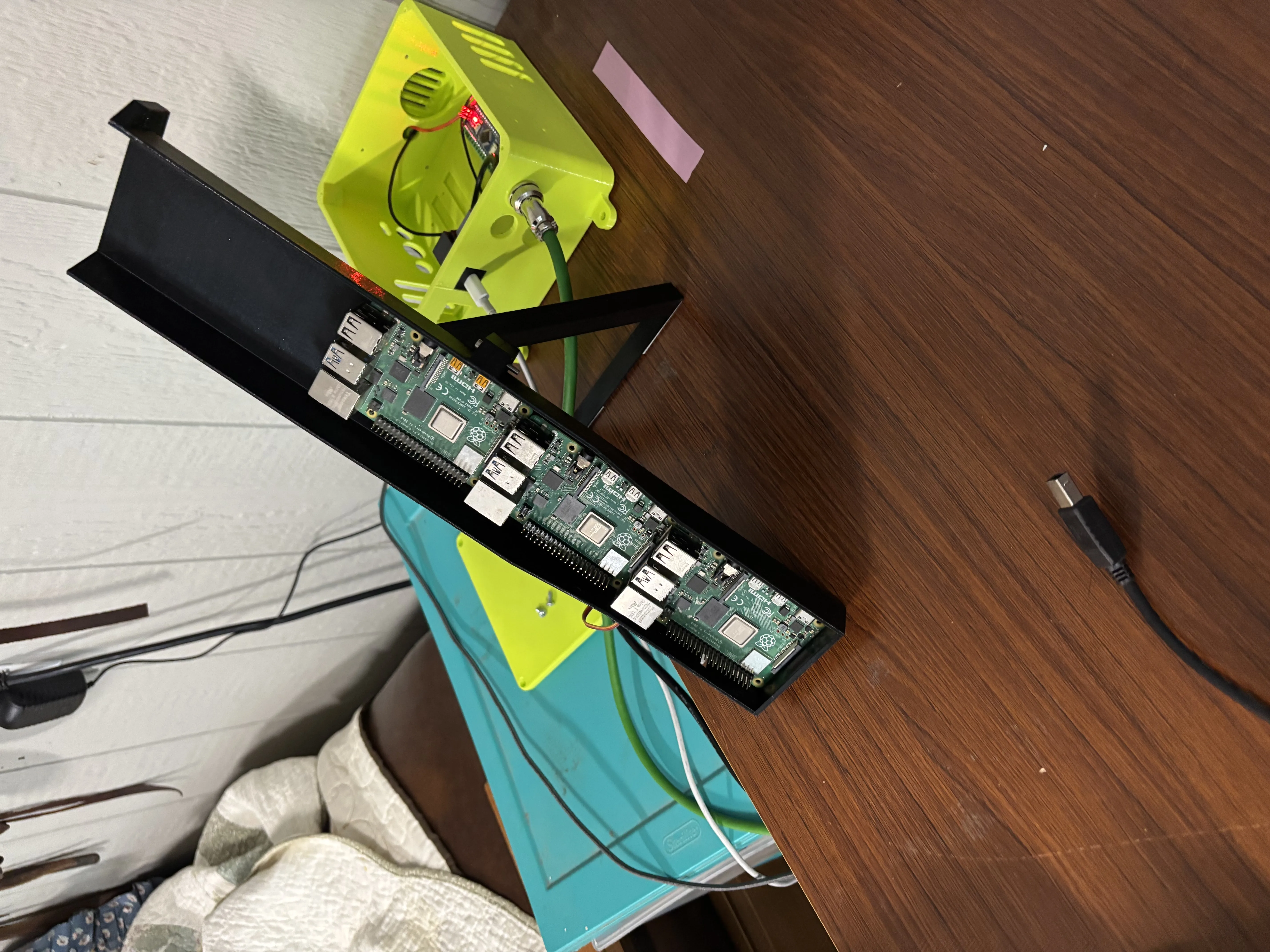 I challenged my self to make a cell that could print an RPi case and place an RPi in it and snap it shut. This project did not succeed but did help me understand the limits of the robot. I made fixtures for the RPis and cases, but fighting the lack of a custom end effector and poor precision of the robot, I decided to abandon the challenge.