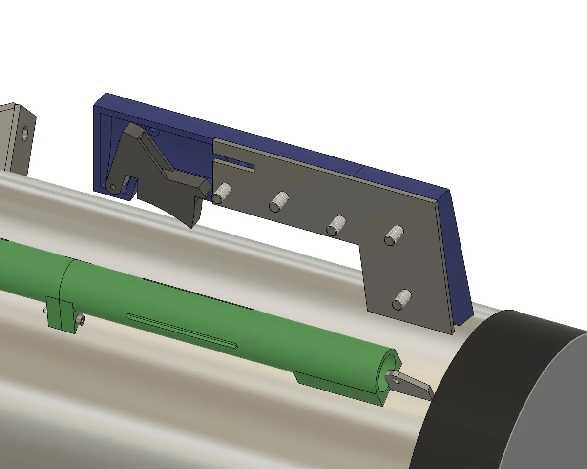 Most of the cannon was designed in Fusion 360 with the intent to be made from sheet metal. Machining and billet parts would’ve been nice, but that was not something I had access to at that time. For complex geometry I used my 3D printer, but due to mainly limitations in strength assemblies with printed parts were given sheet metal skeletons. The trigger mechanism was one of the more challenging parts of the project due to my manufacturing constraints. Unfortunately, as parts increased in thickness, cut quality took a severe hit. The trigger cam and pawl made from 0.25" steel had to be ground down manually since the plasma torch left a very uneven edge.